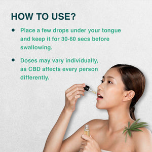 Our CBD Oil is best administered when taken sublingually (under the tongue). Place a few drops under your tongue and keep it for 30-60 secs before swallowing.